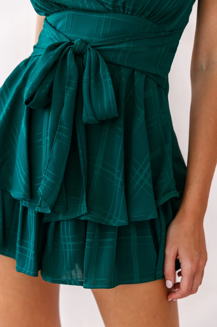 Agron Off-Shoulder Accordion Pleat Romper Forest Green