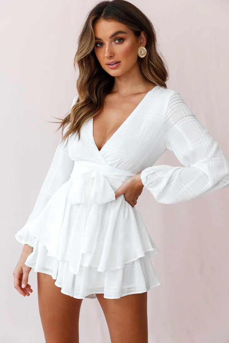 Mimi Three-Quarter Sleeve Drawstring Romper White
