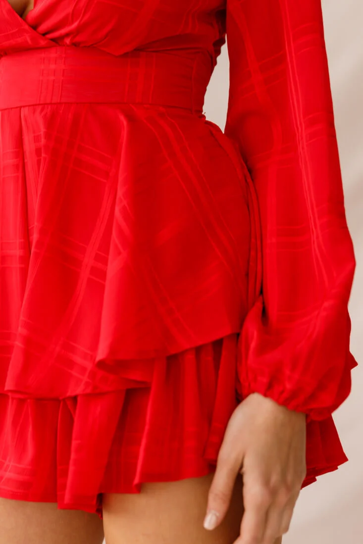 Maddox Fit & Flare Long Sleeve Romper Wine