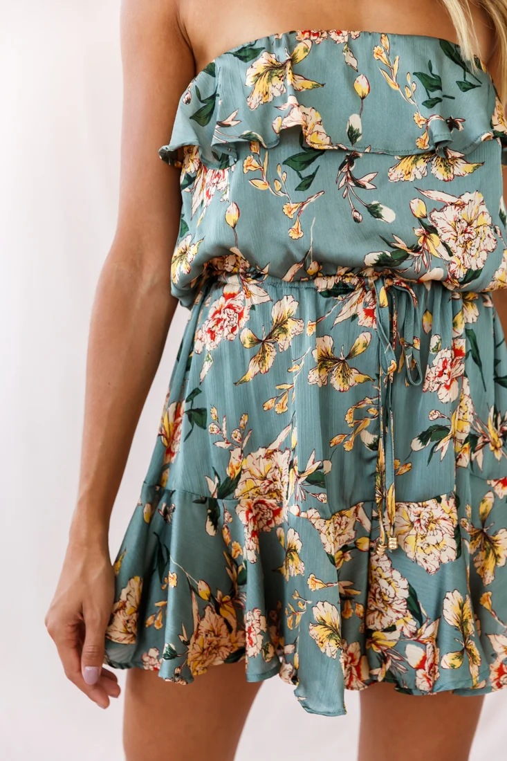 Louisa Elasticated Waist Ruffle Hem Romper Beige