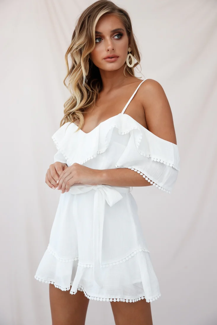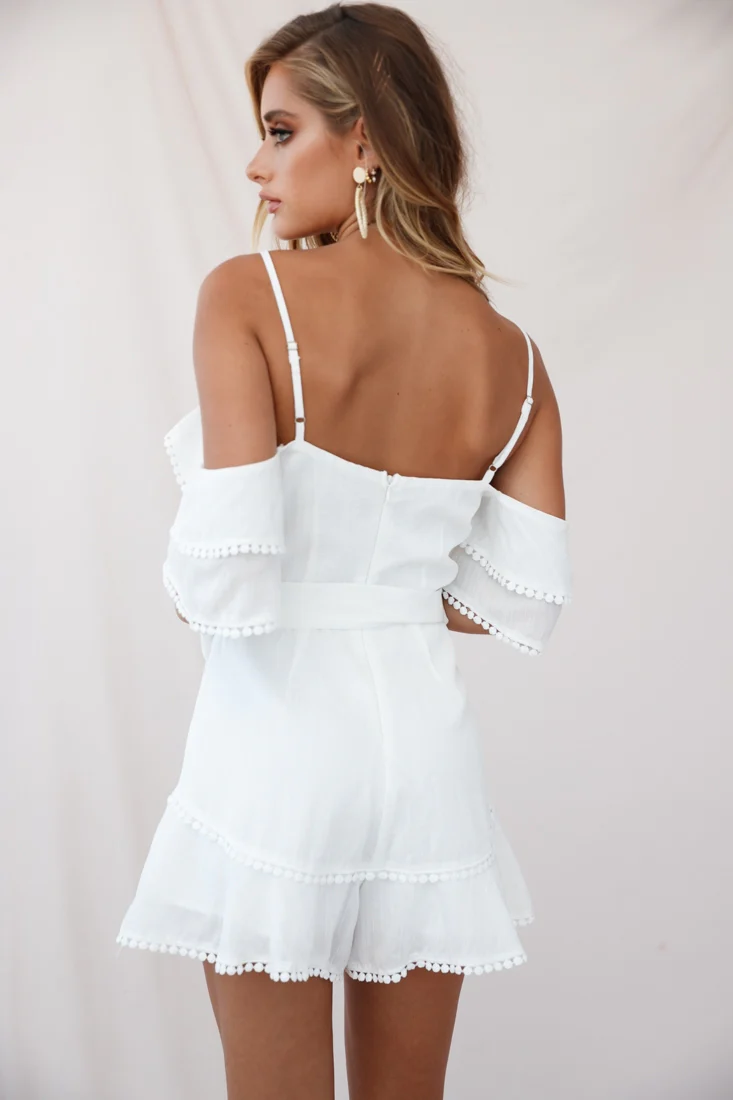 Sugar Sugar Off-Shoulder Trim Detail Romper White