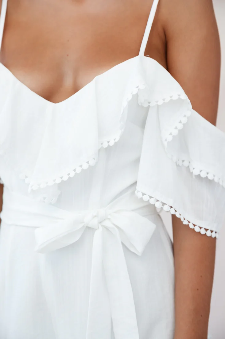 Meadow Ruffle Strap Open Back Midi Jumpsuit White