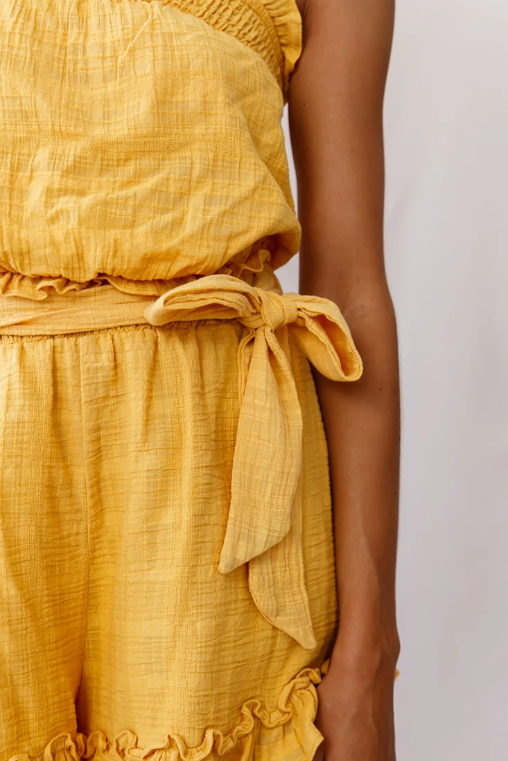 Stephy Frill-Trimmed Elasticated Strapless Romper Yellow