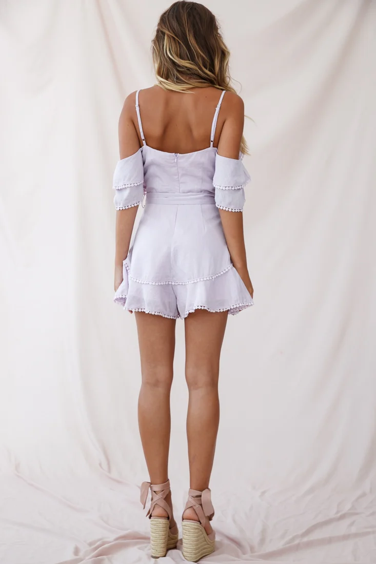 Innocence Lace Ruffle Strap Romper Blush