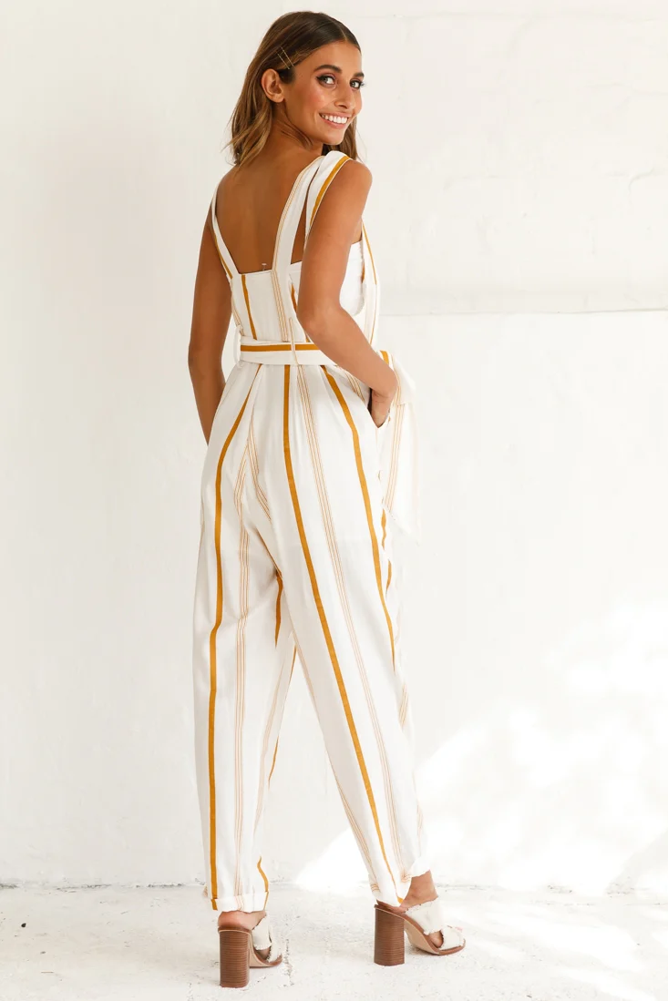 Fresno Straight Leg Pinafore Jumpsuit Stripe Print Mustard
