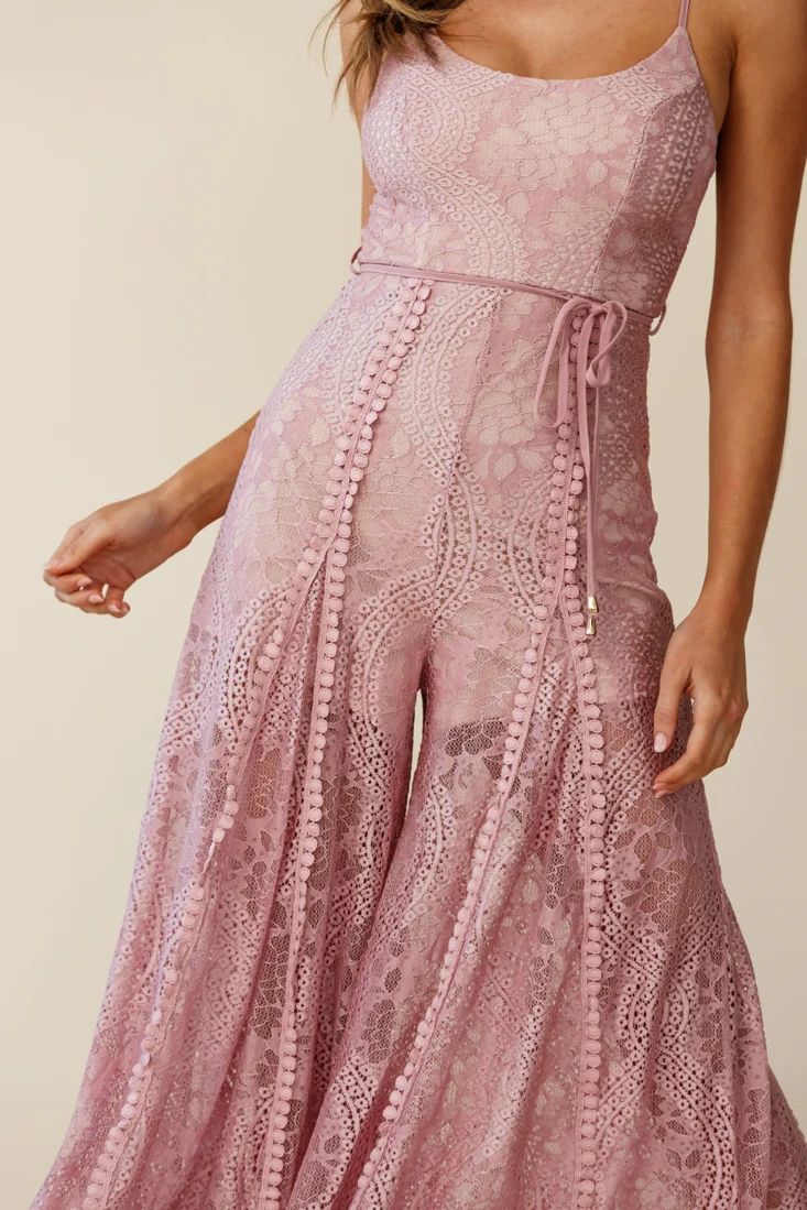Maddox Fit & Flare Long Sleeve Romper Floral Lace Rose