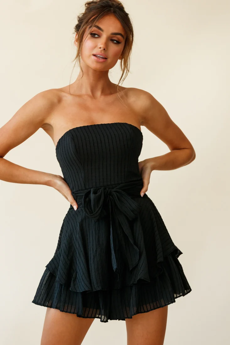 Adrienne Ruffle Shoulder Tie-Up Back Romper Black
