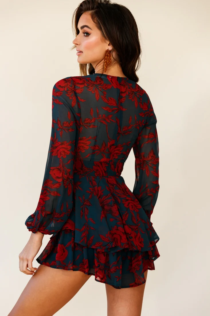 Nebula Long Sleeve Layered Ruffle Romper Wine
