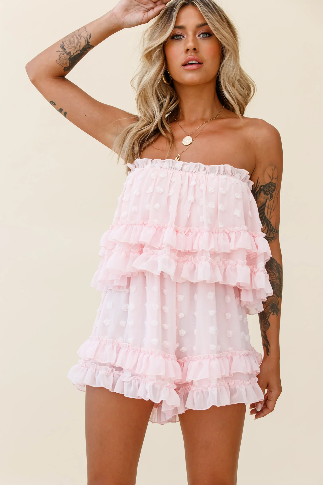 It's Complicated Crossover Bodice Flounce Romper Rose