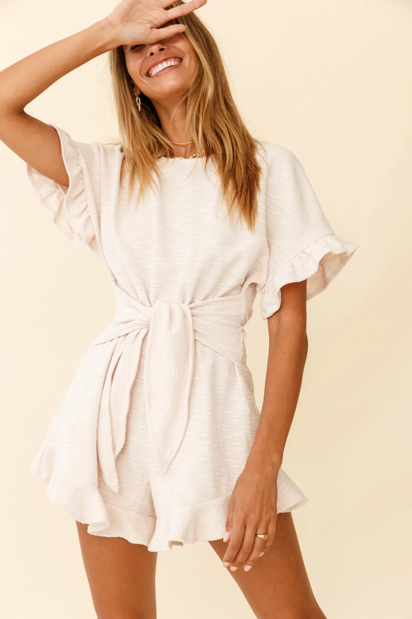 Feelin' Blessed Waist-Tie Frill Trim Romper Beige
