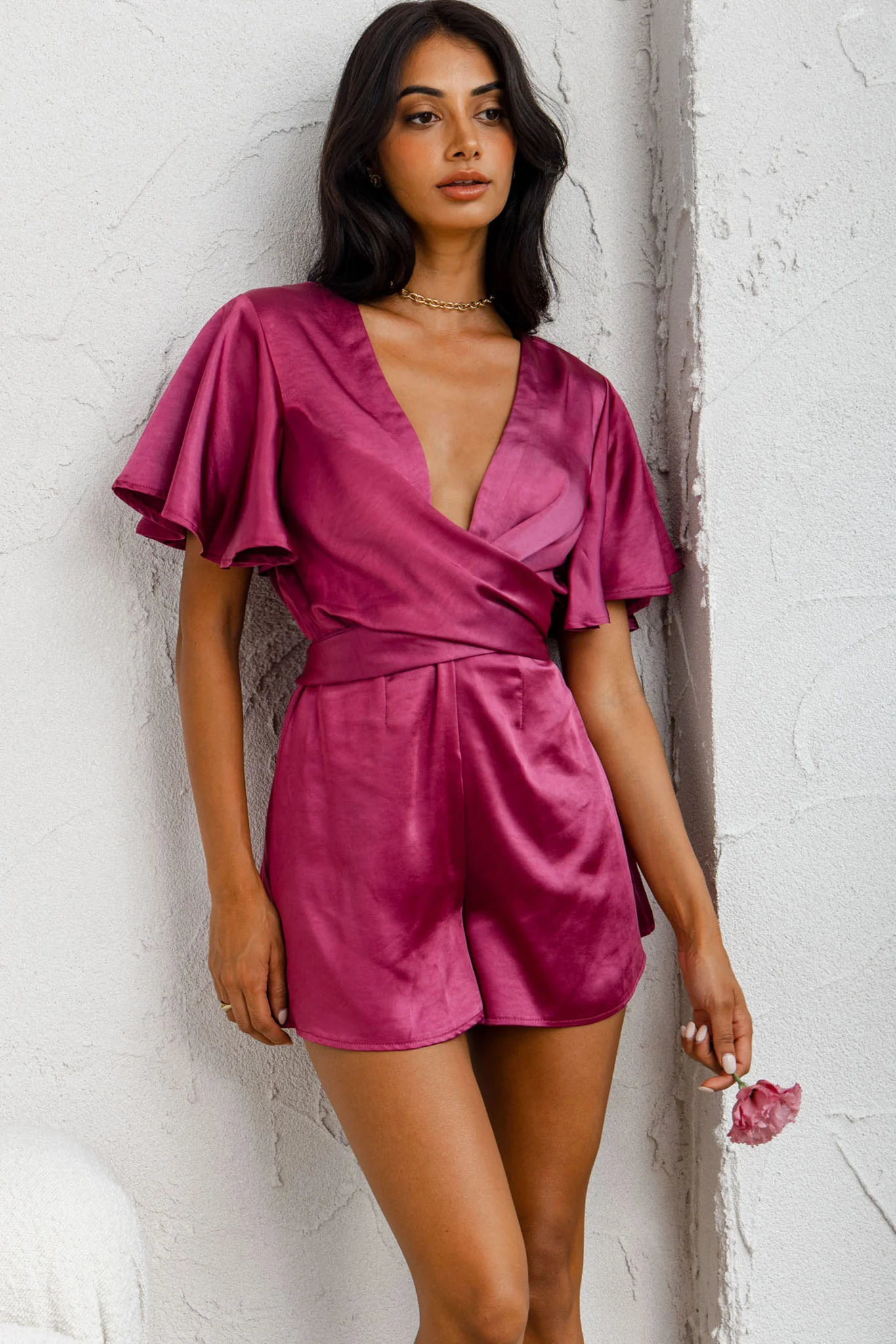 Unconditional Plunging Wrap Style Romper Fuchsia