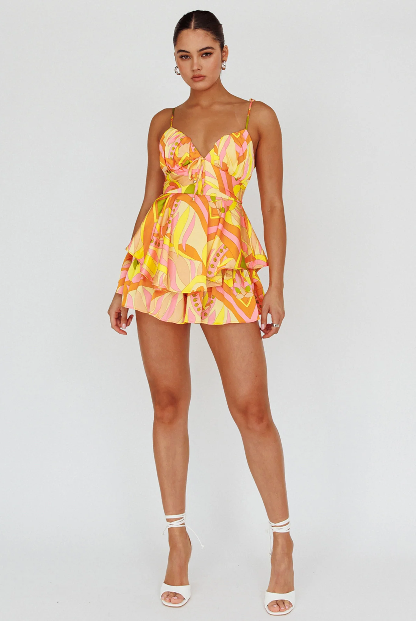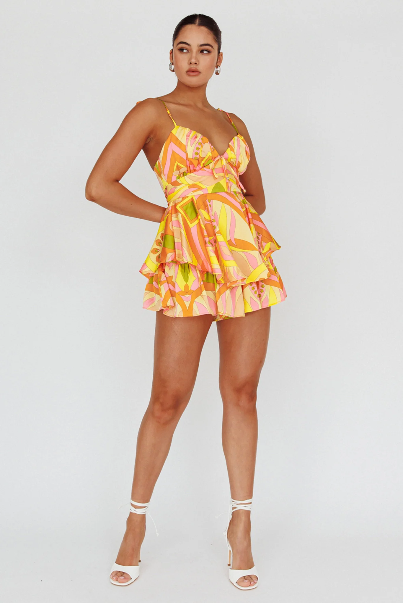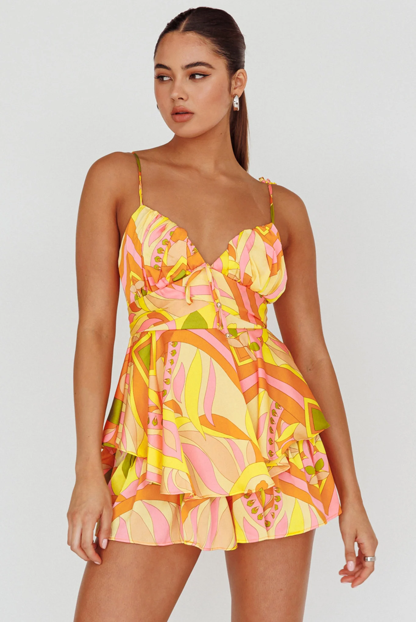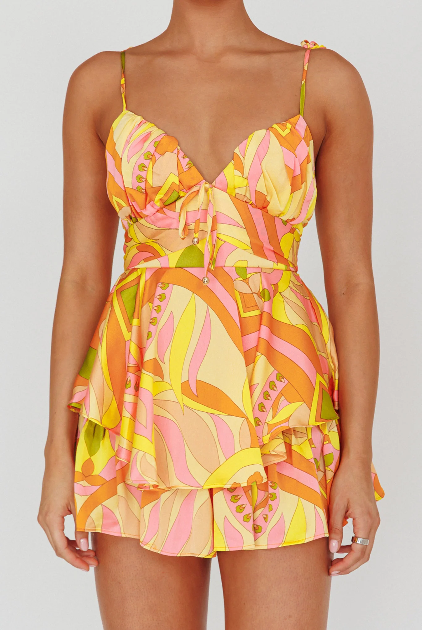 Happy Thoughts Tied Shoulder Romper Yellow Multi