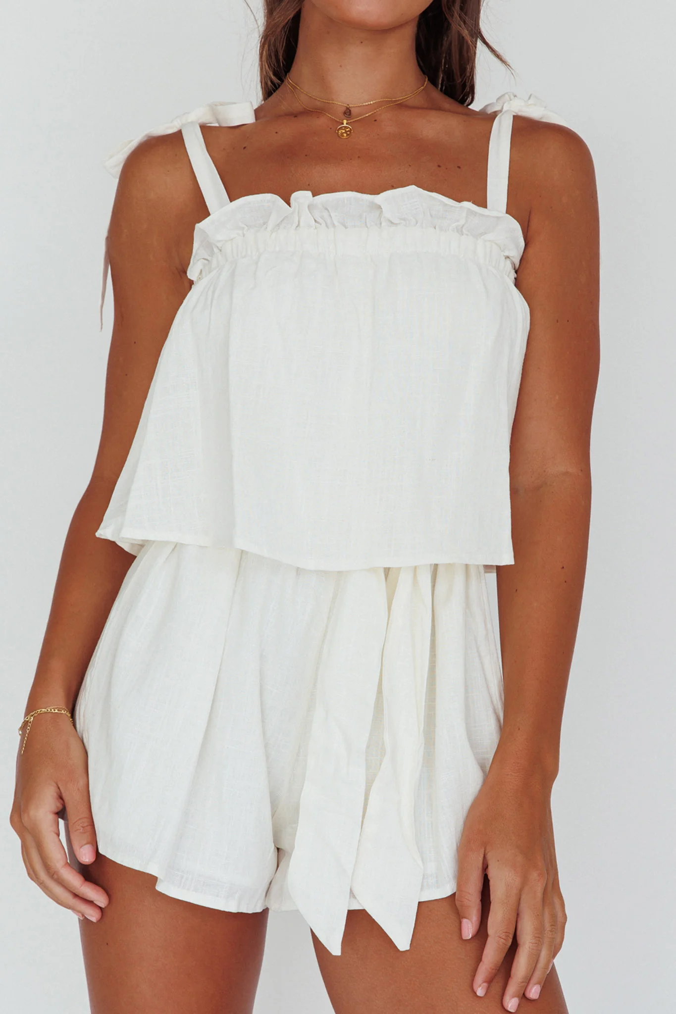 Minnow Tied Shoulder Romper White