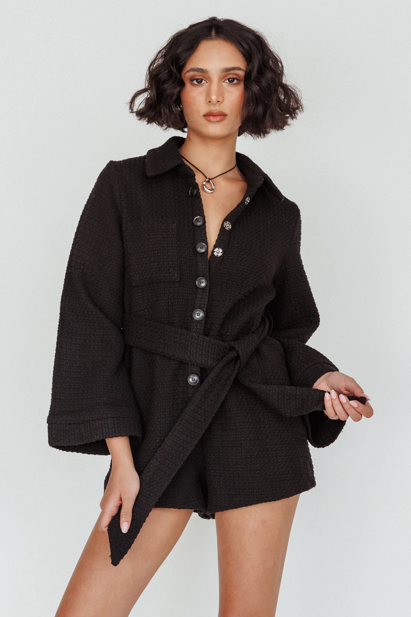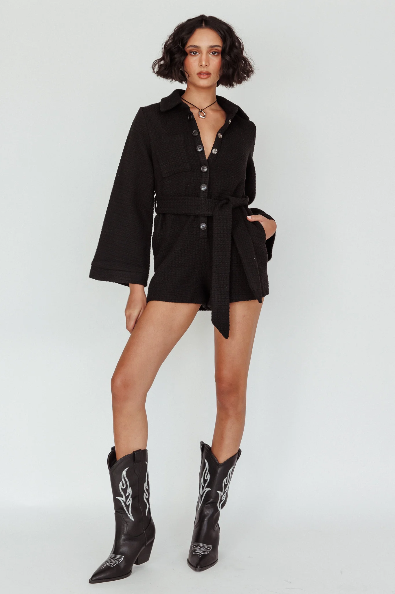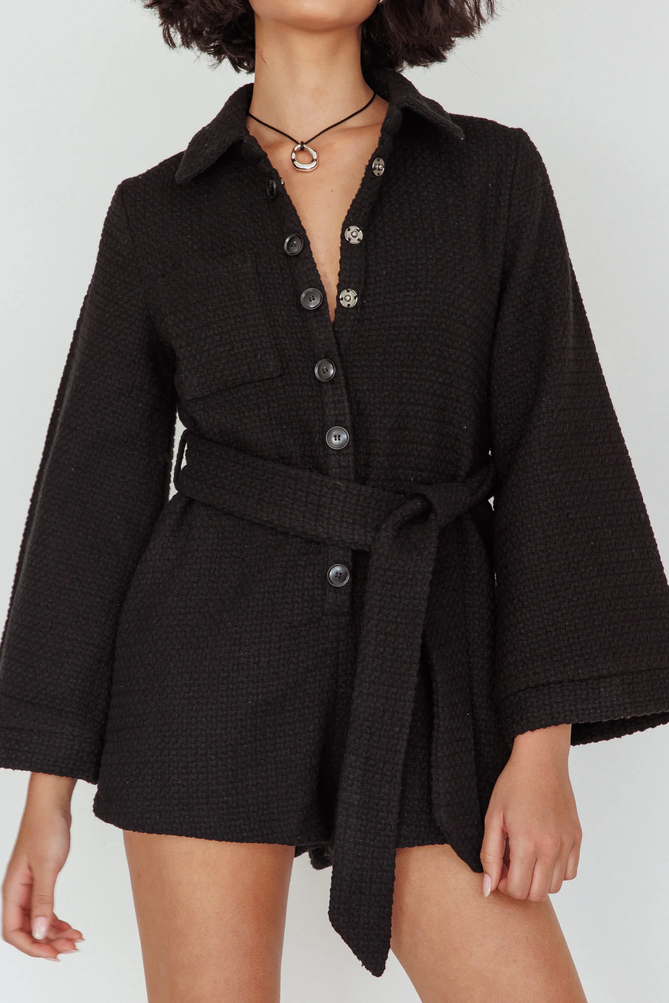 Cy Long Sleeve Knit Romper Black