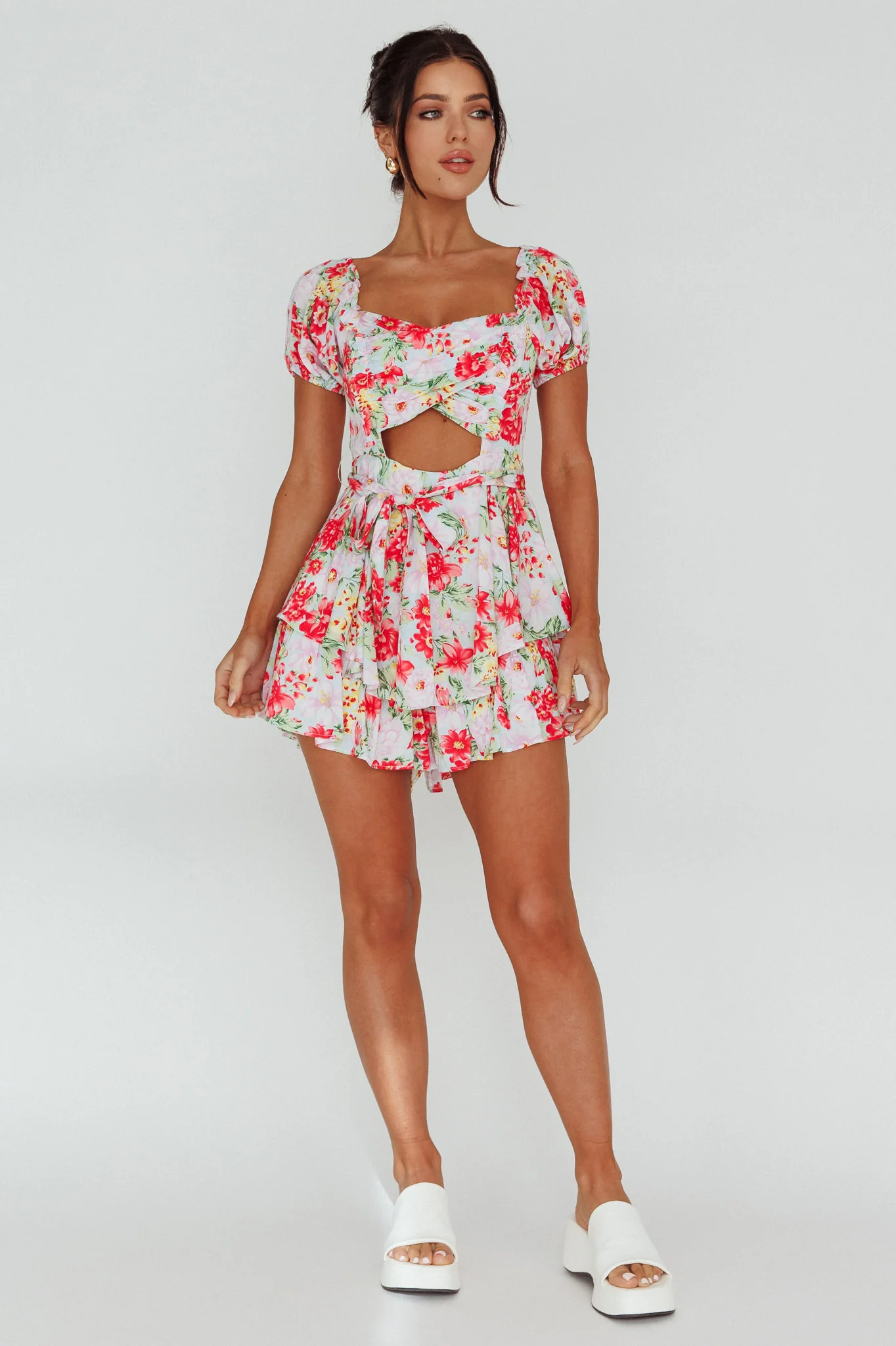 Whimsical Cut-out Bodice Romper Floral Pink
