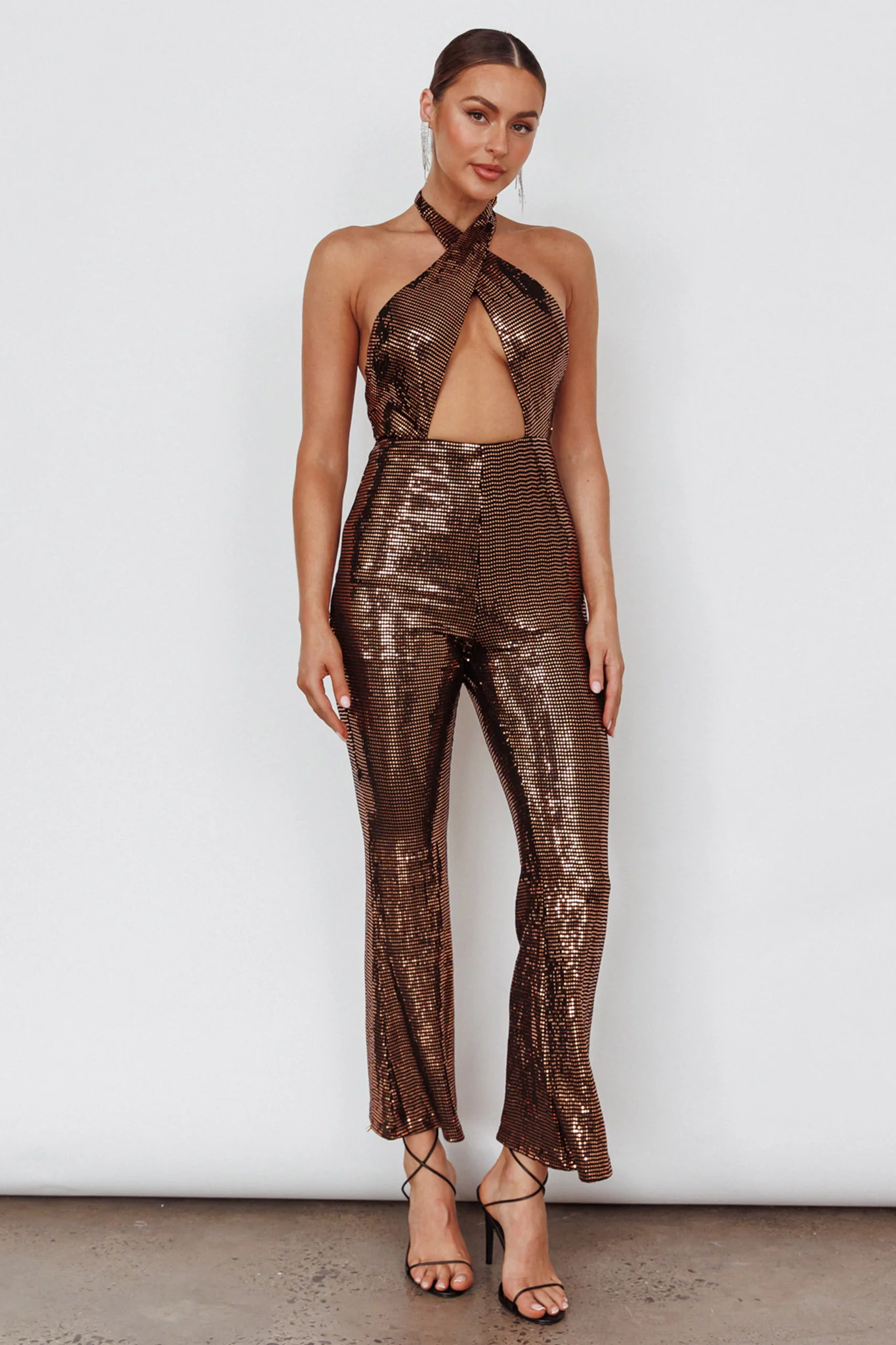 Moon In Leo Halterneck Jumpsuit Bronze