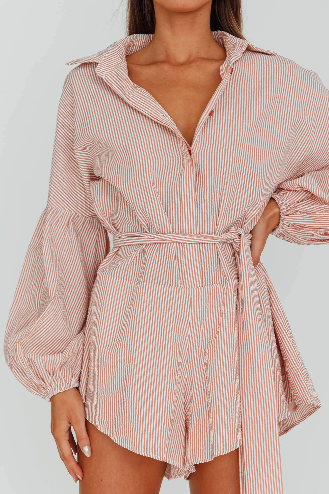 Daytona Beach Long Sleeve Shirt Romper Terracotta Stripe