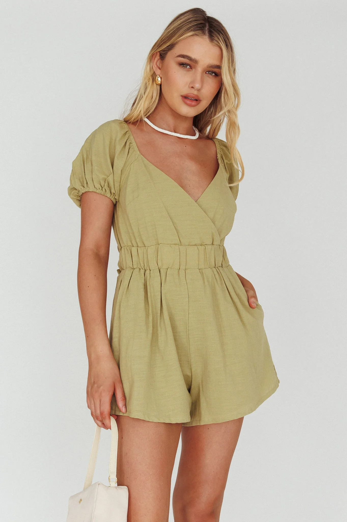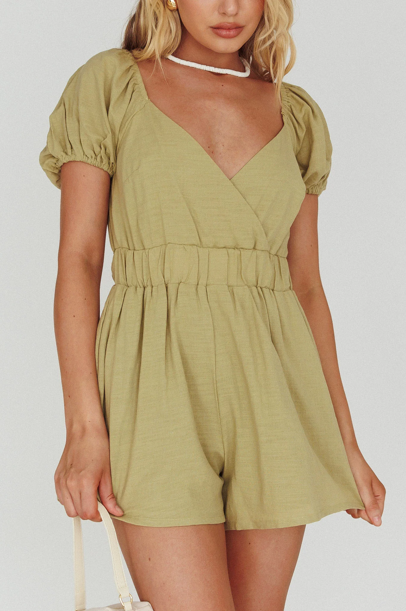Alexis Elasticated Waist Romper Avocado