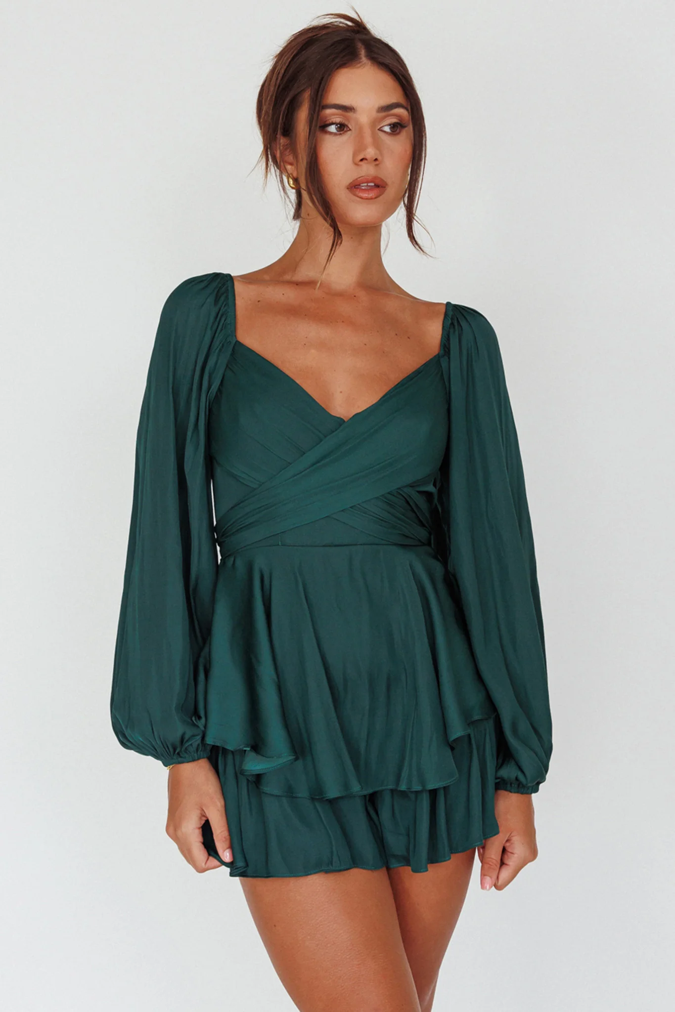 It's Complicated Long Sleeve Flounce Romper Forest Green
